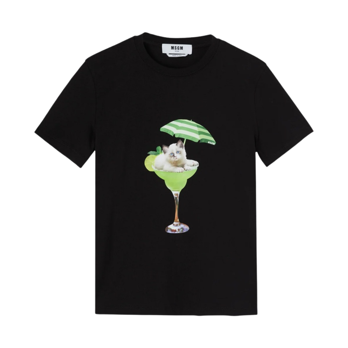 (W) 엠에스지엠 칵테일 캣 그래픽 코튼 크루넥 티셔츠 블랙