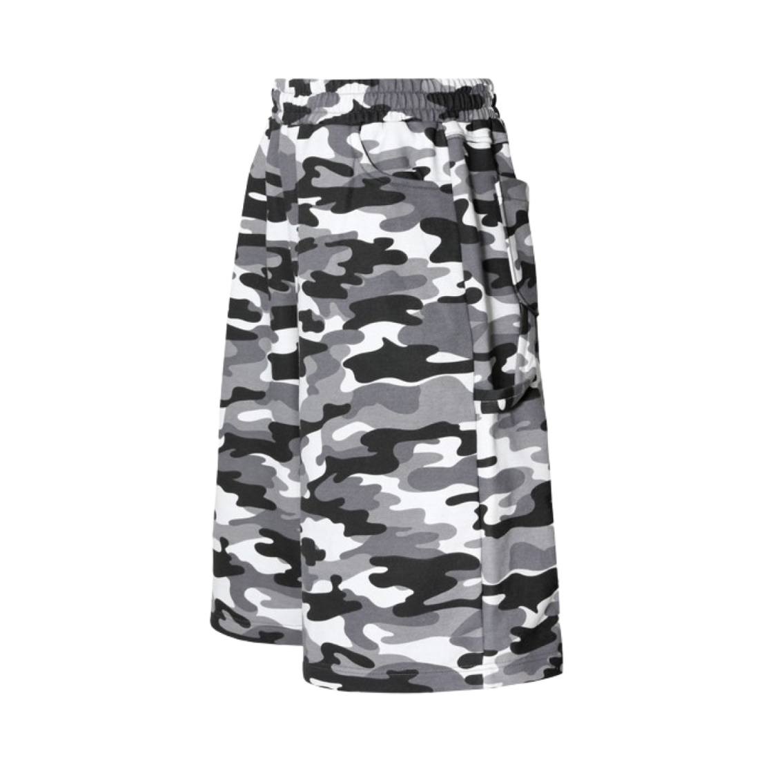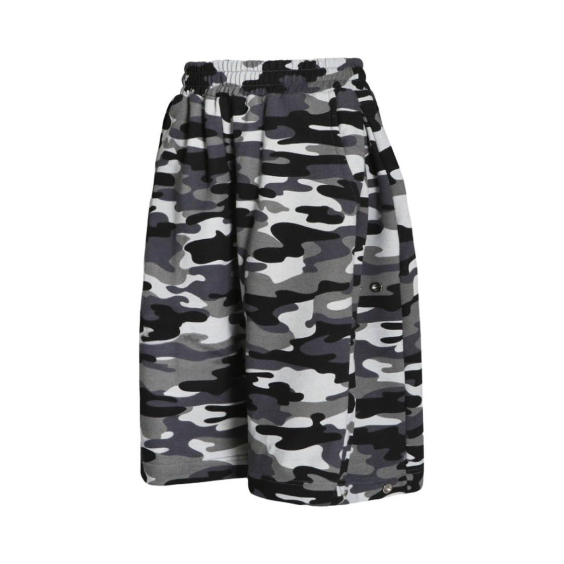 엠제이디 사이드 스냅 와이드 스웨트쇼츠 카모