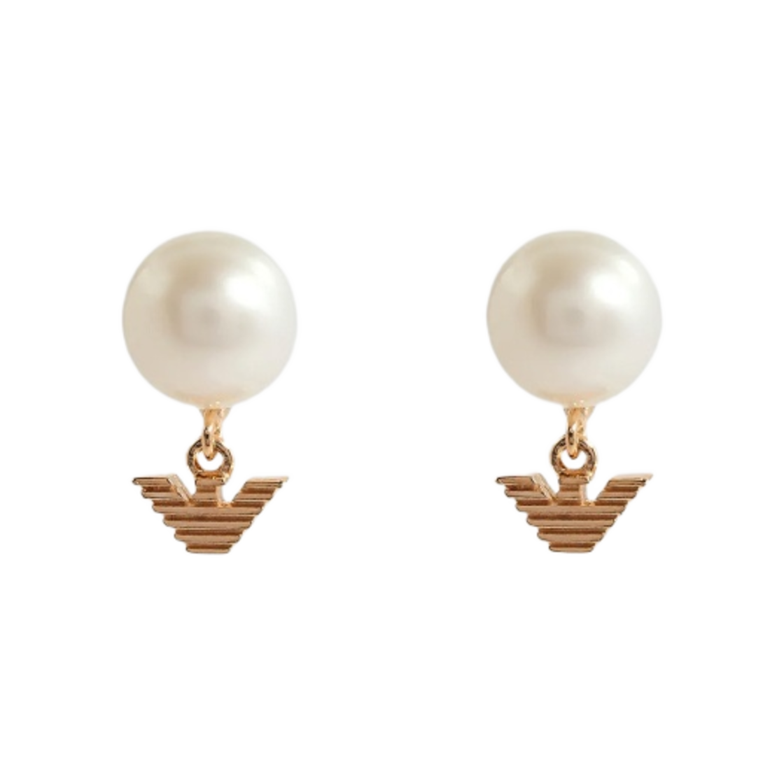 (W) 엠포리오 아르마니 화이트 펄 스터드 이어링 로즈 골드