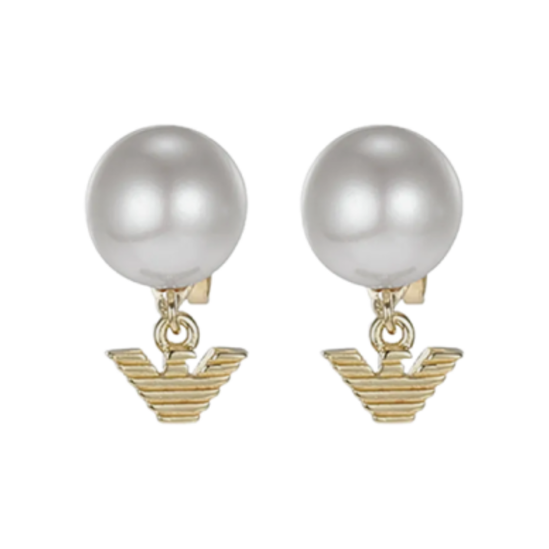 (W) 엠포리오 아르마니 이글 로고 펄 스터드 이어링 실버