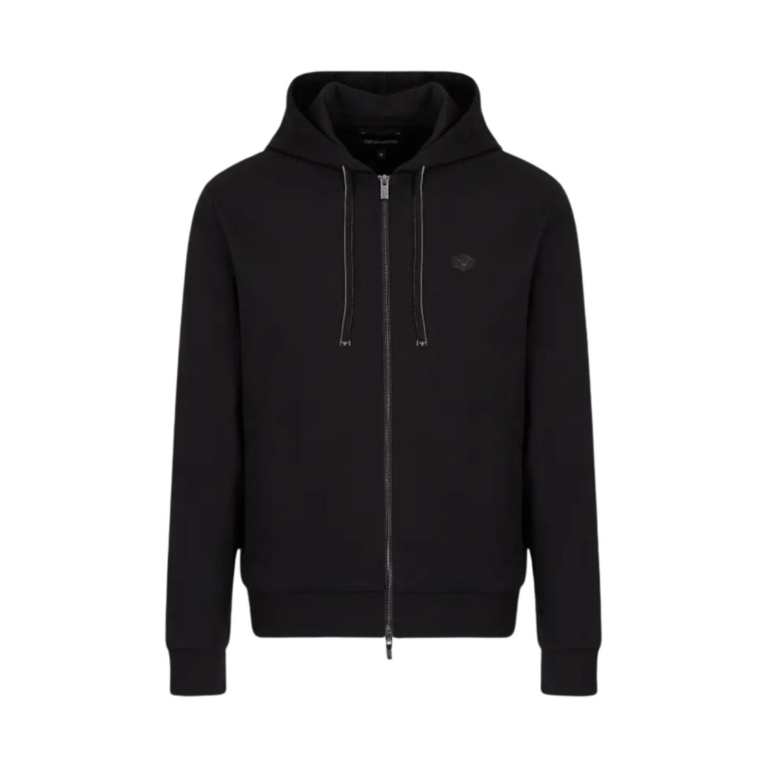 엠포리오 아르마니 코튼 피티드 롱슬리브 후드 집 스웨트셔츠 블랙