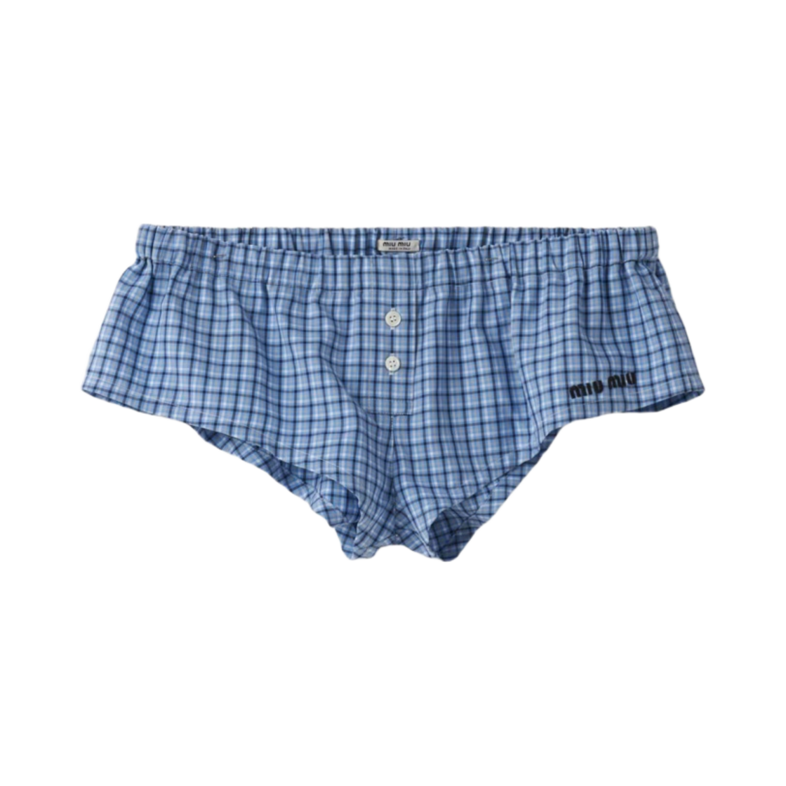 (W) 미우 미우 체크 박서 쇼츠 셀레스트 블루