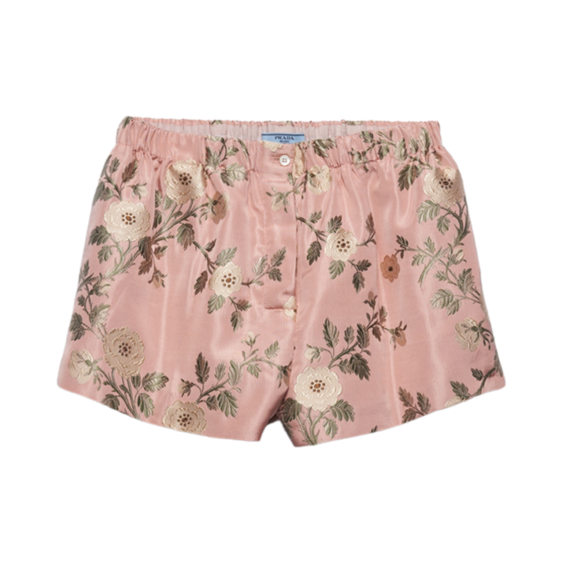 (W) 프라다 플로럴 프린트 자카드 쇼츠 베고니아 핑크