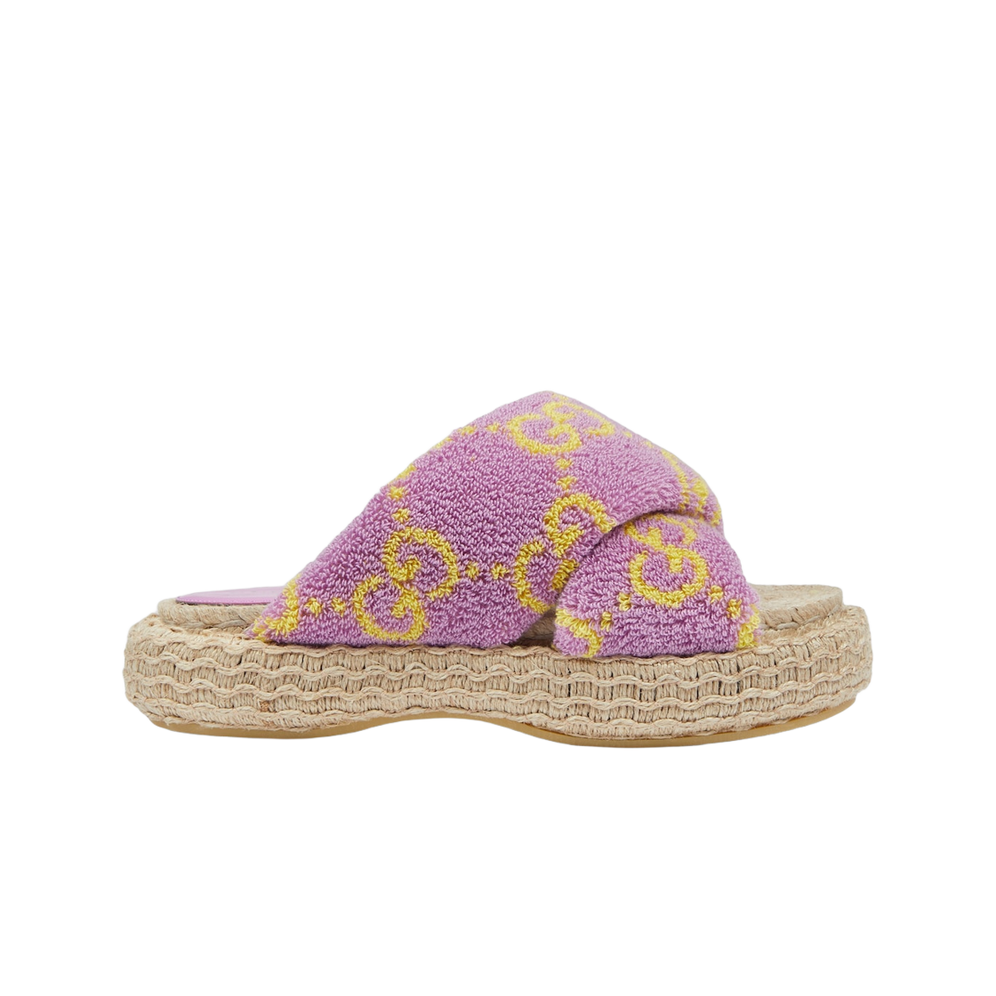 (W) 구찌 GG 슬라이드 샌들 퍼플 옐로우 맥시 GG 테리클로스 자카드