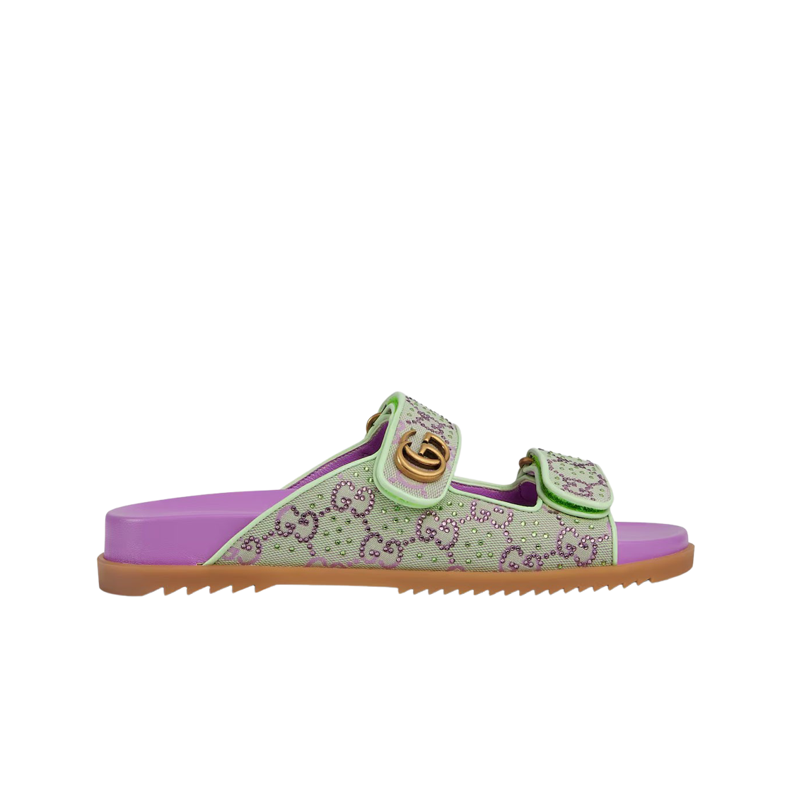 (W) 구찌 샌들 더블 G 퍼플 그린 GG 크리스탈 캔버스