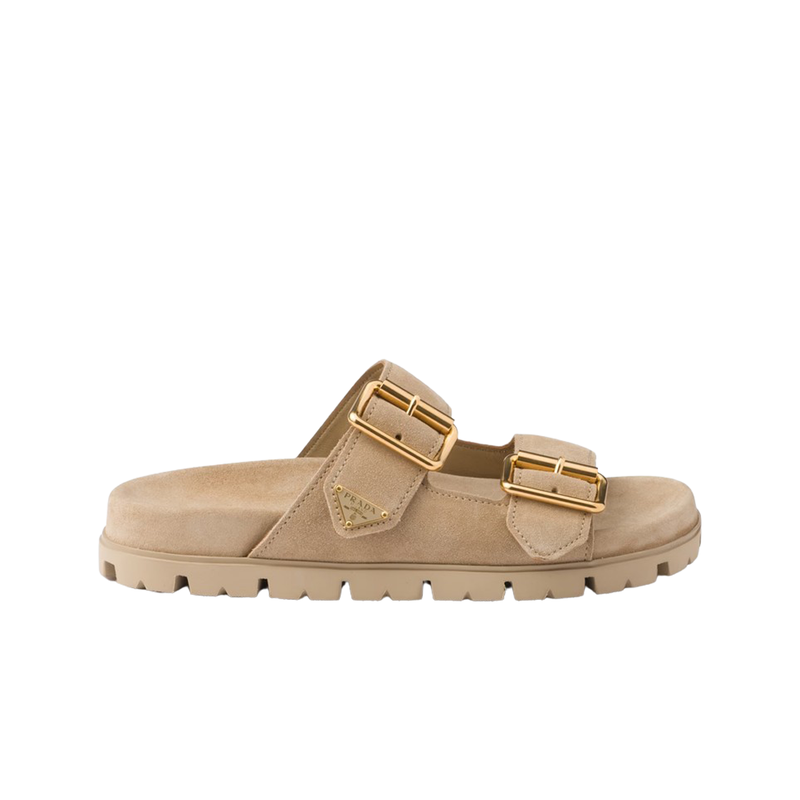 (W) 프라다 스웨이드 스트랩 슬라이드 에크루