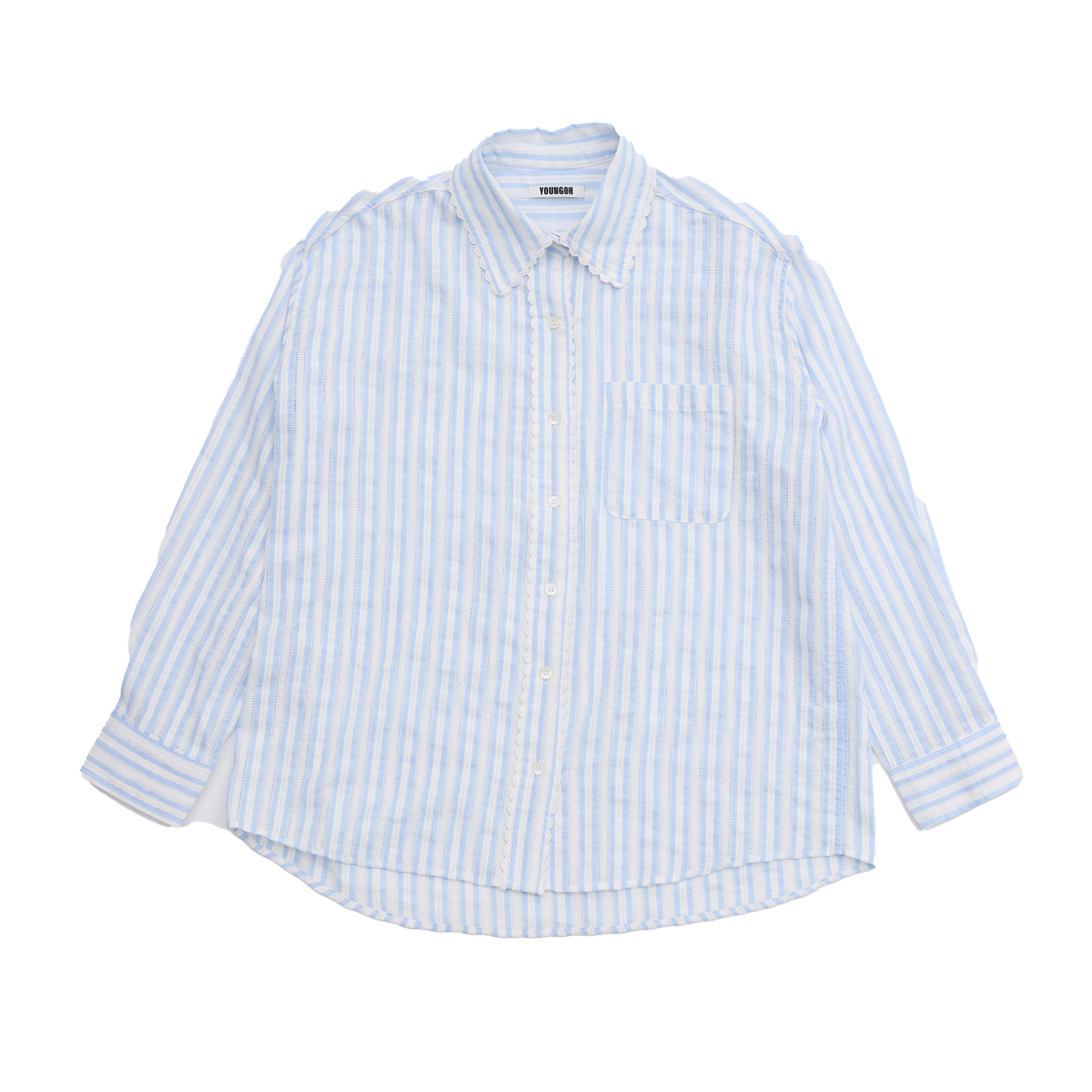 영오 레이스 트리밍 스트라이프 셔츠 블루