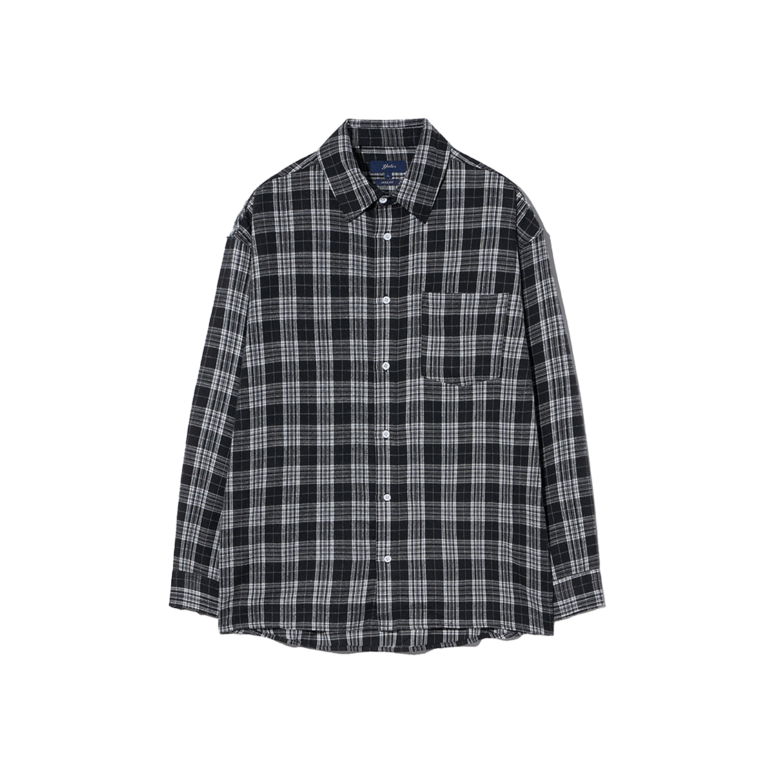 예일 플란넬 빈티지 오버핏 체크 셔츠_블랙