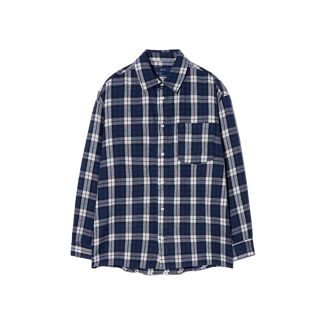 예일 플란넬 빈티지 오버핏 체크 셔츠_네이비