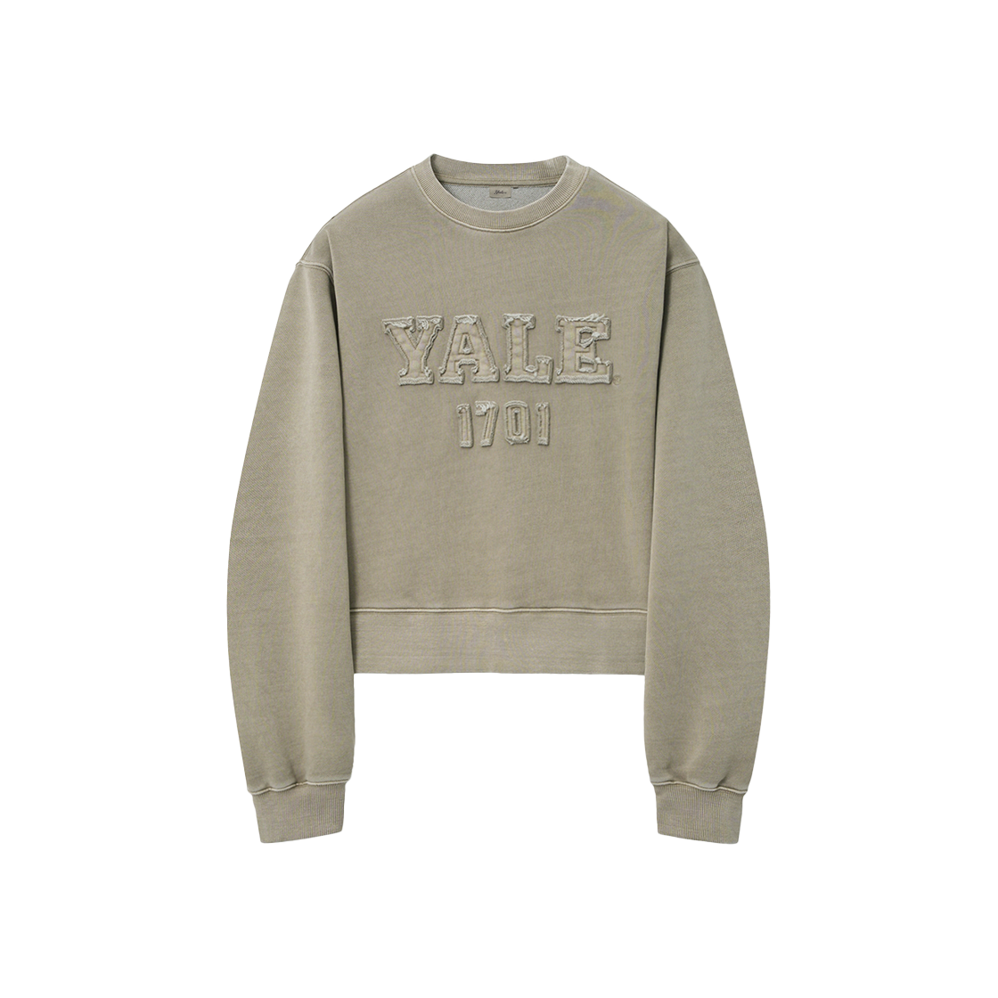예일 우먼즈 피그먼트 아플리케 크롭 스웨트셔츠_베이지