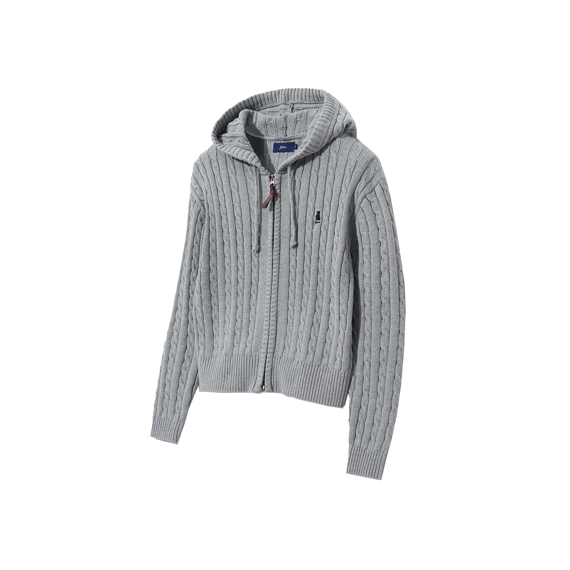 예일 우먼즈 케이블 니트 후드 집업_그레이