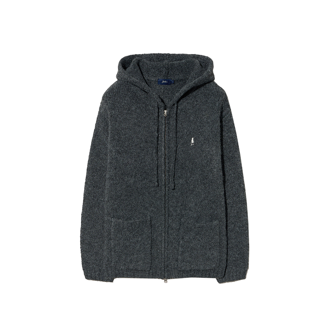 예일 헤어리 오너먼트 니트 후드 집업_차콜