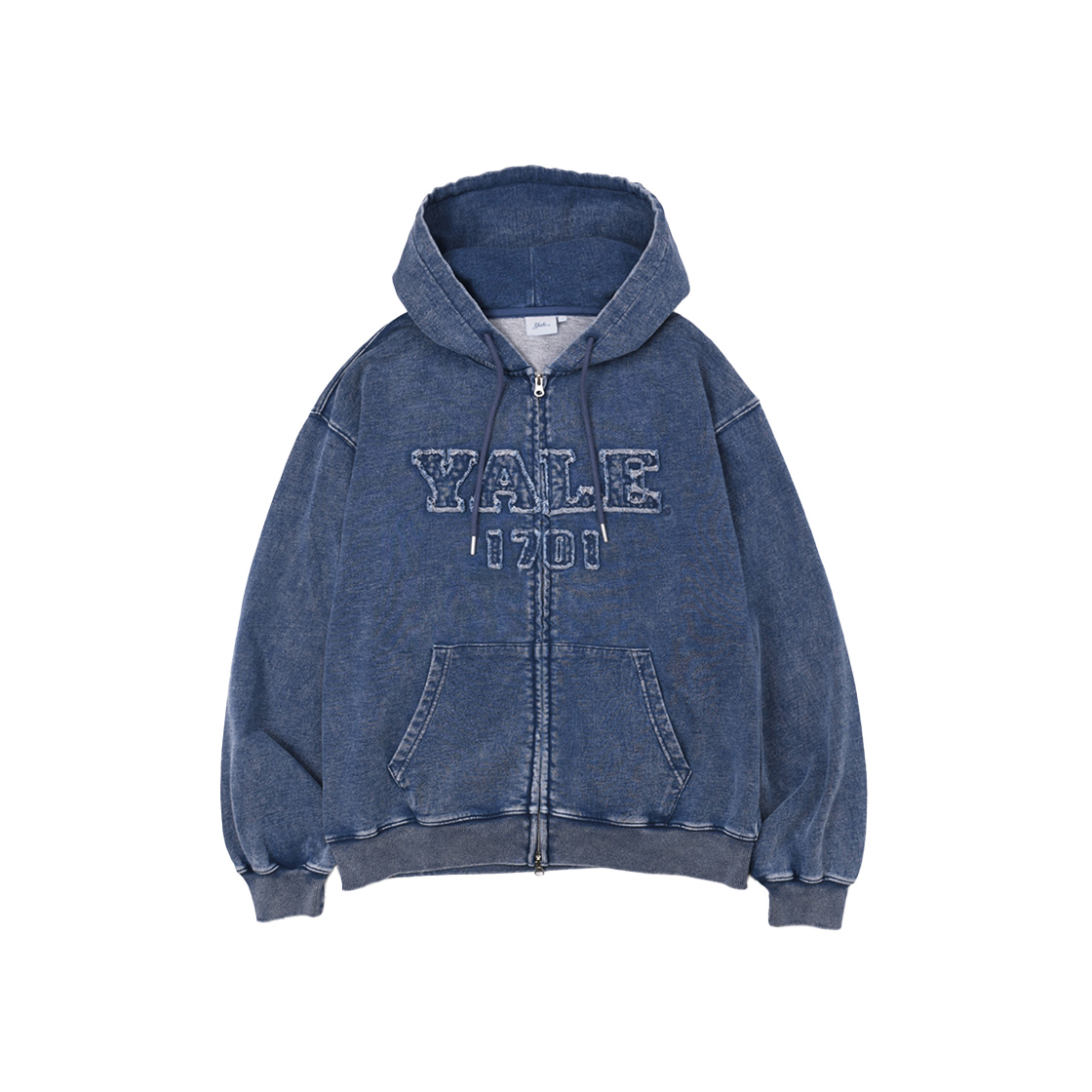 예일 Y로고 체크 아플리케 후드집업_네이비