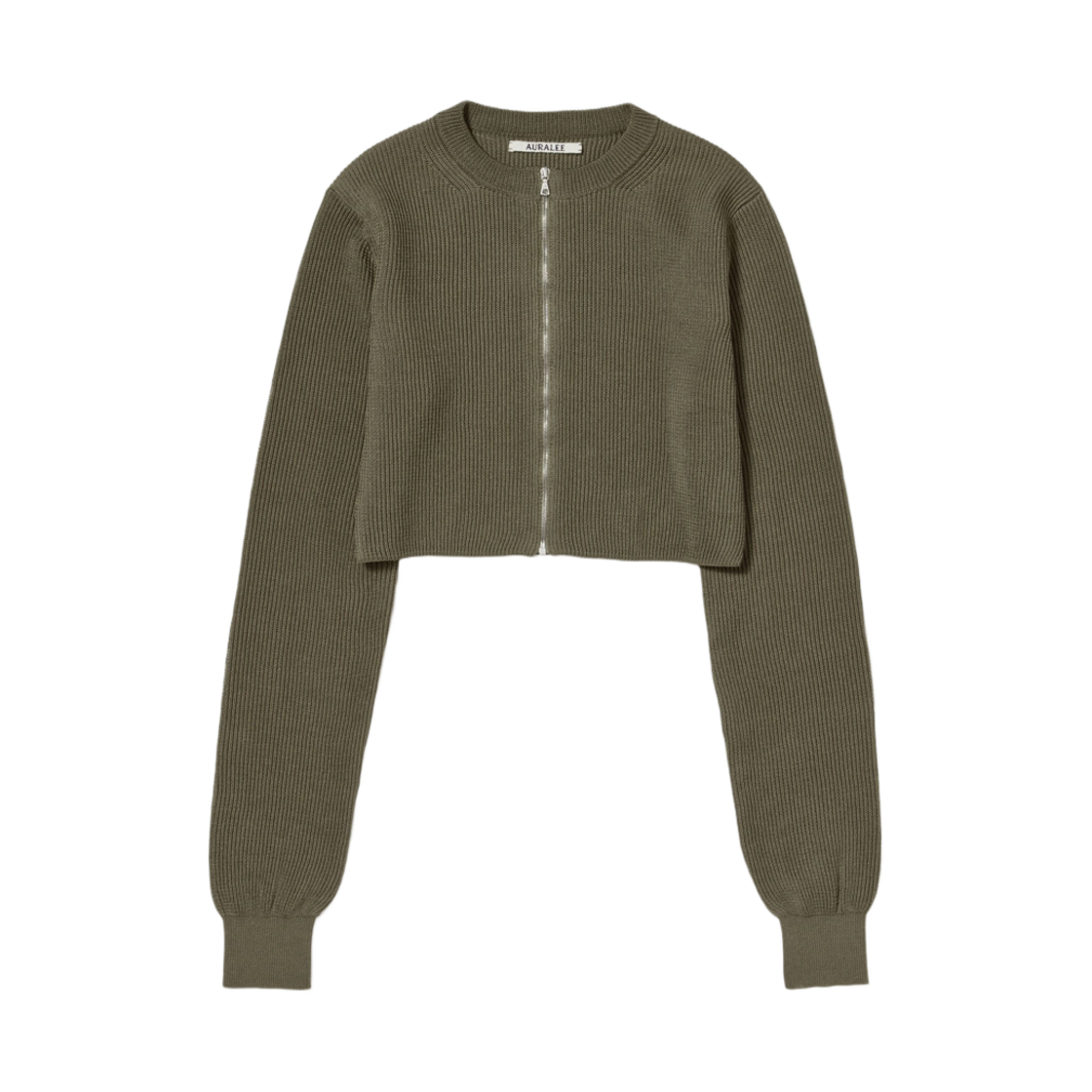 (W) 오라리 플랫 얀 립 니트 크루넥 집 가디건 카키 - 25SS