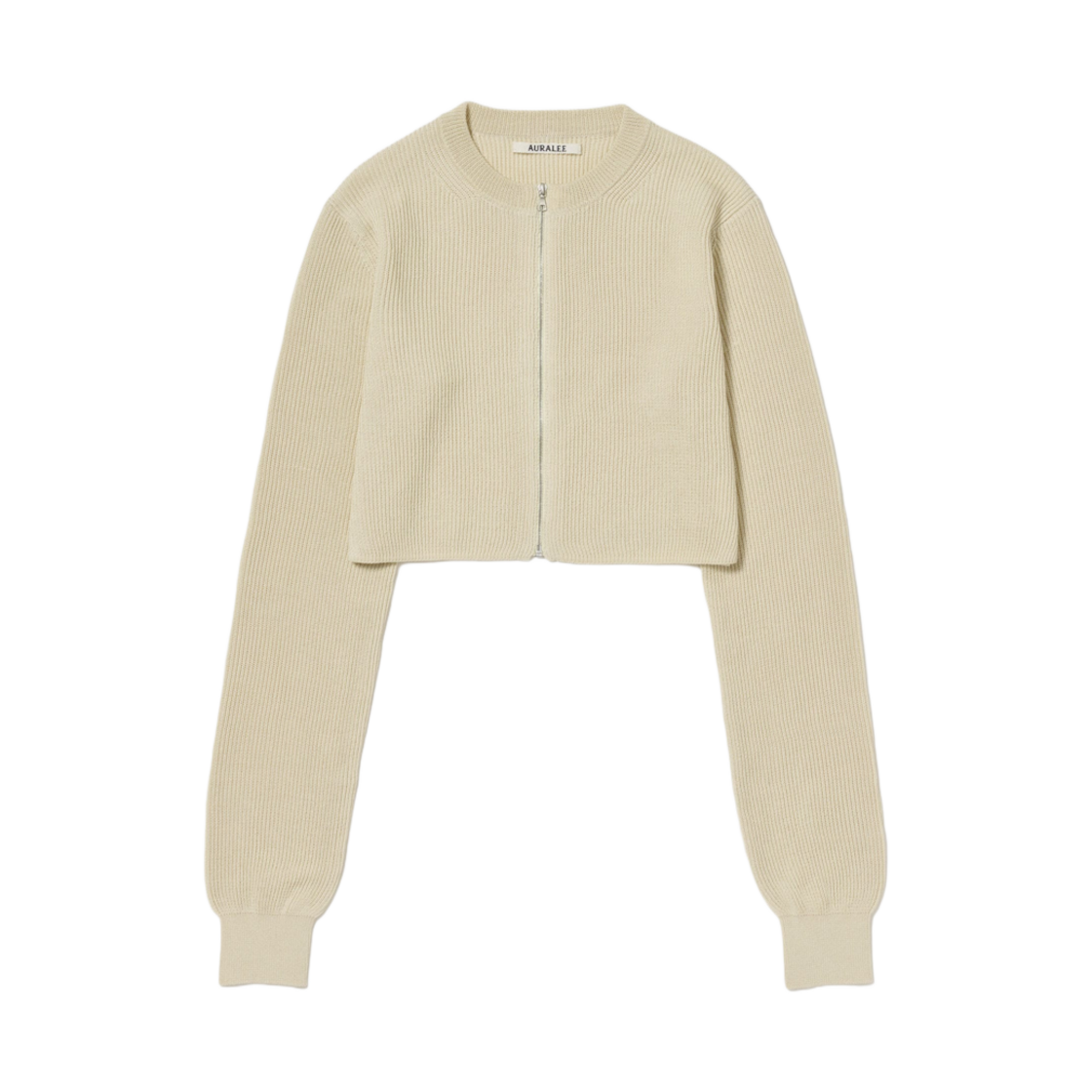 (W) 오라리 플랫 얀 립 니트 크루넥 집 가디건 아이보리 - 25SS
