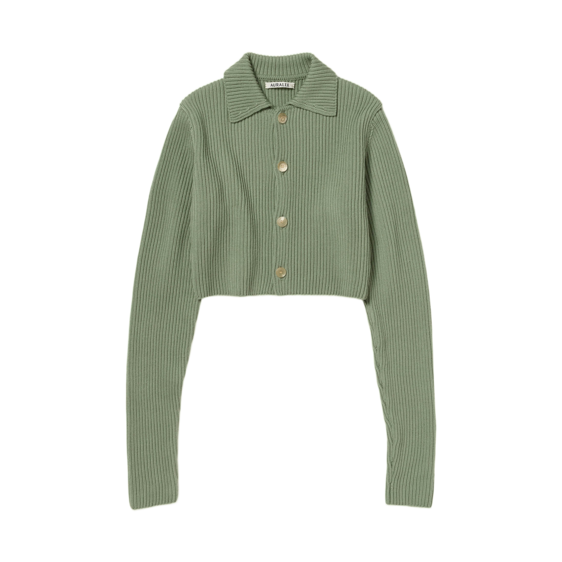 (W) 오라리 슈퍼 파인 울 소프트 립 니트 크롭 셔츠 가디건 더스티 그린 - 25AW