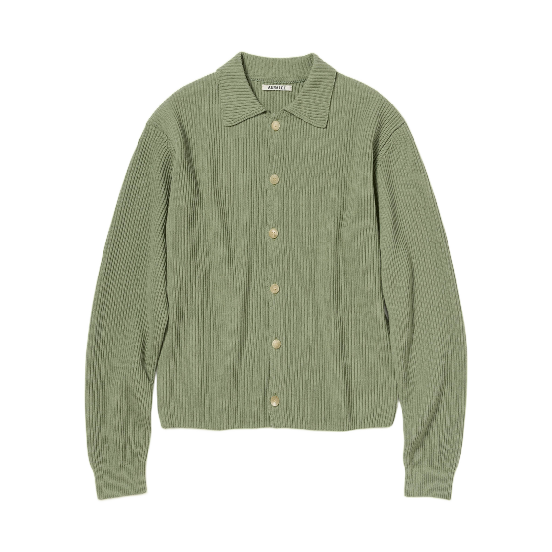 오라리 슈퍼 파인 울 립 니트 셔츠 가디건 더스티 그린 - 25AW