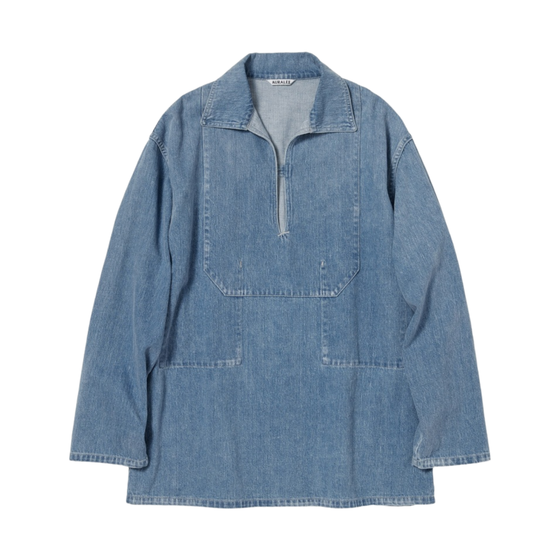 오라리 셀비지 페이디드 라이트 데님 P/O 셔츠 라이트 인디고