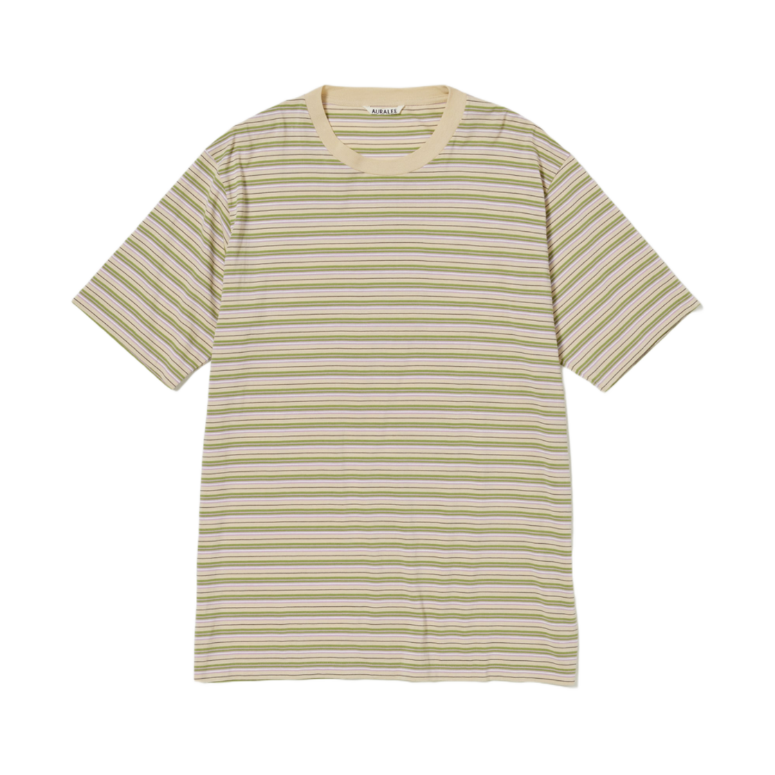 오라리 하드 트위스트 코튼 보더 티셔츠 베이지 보더