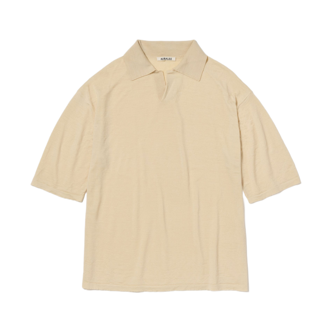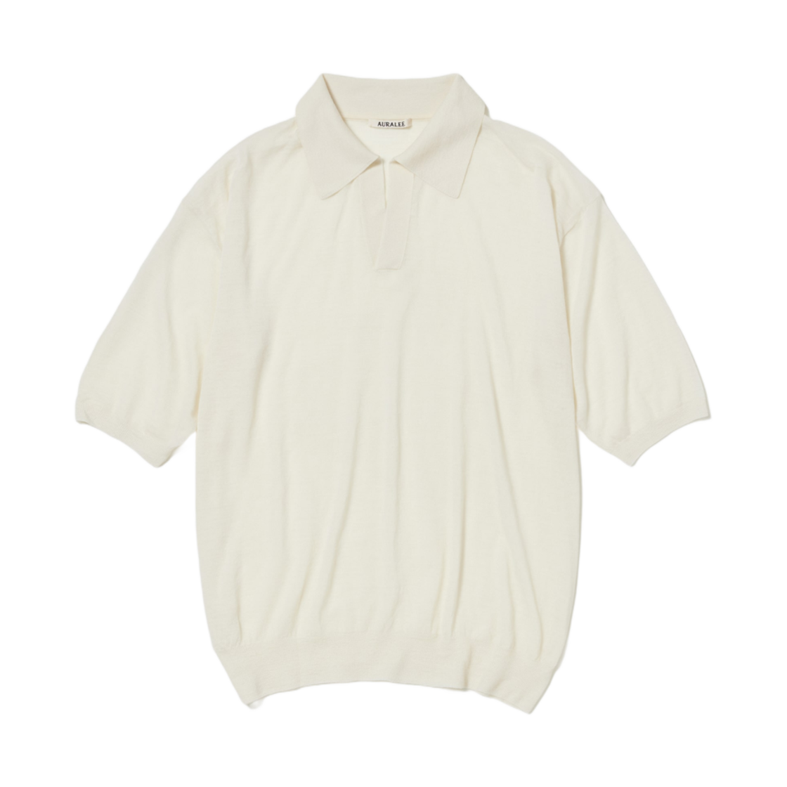 오라리 하드 트위스트 하이 게이지 울 실크 니트 스키퍼 폴로 아이보리