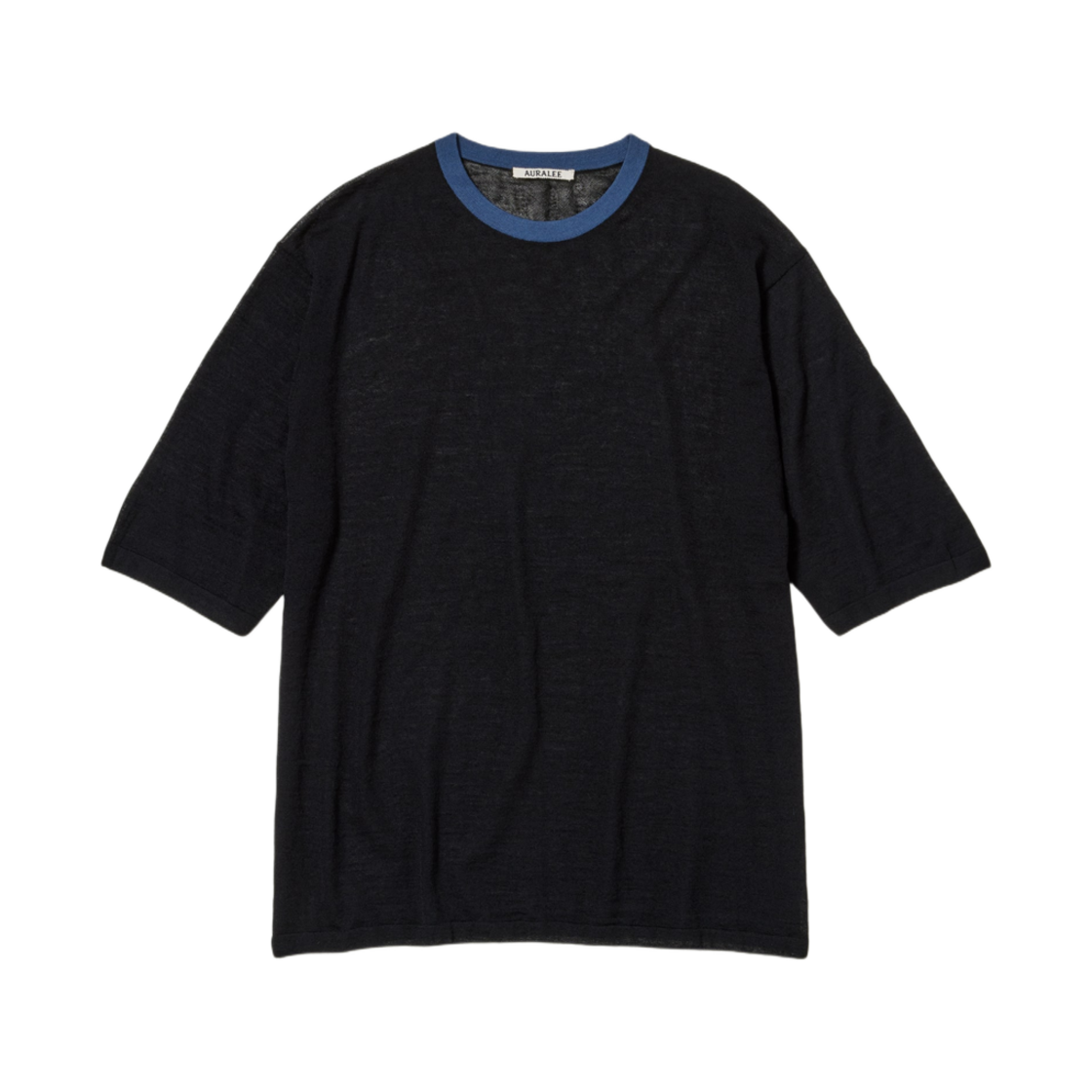 오라리 하드 트위스트 하이 게이지 울 실크 니트 티셔츠 블랙