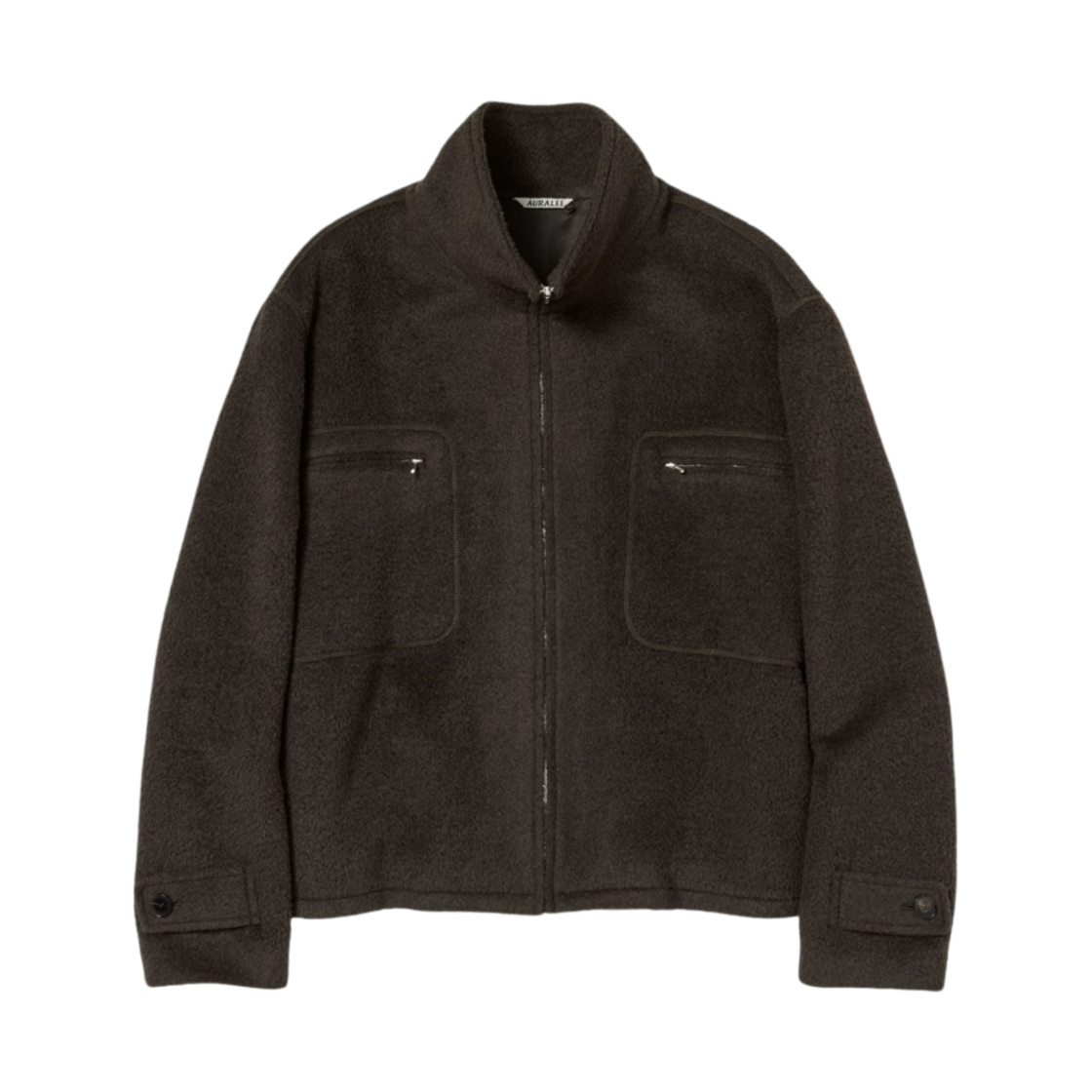 오라리 베이비 카멜 플란넬 집 블루종 다크 브라운