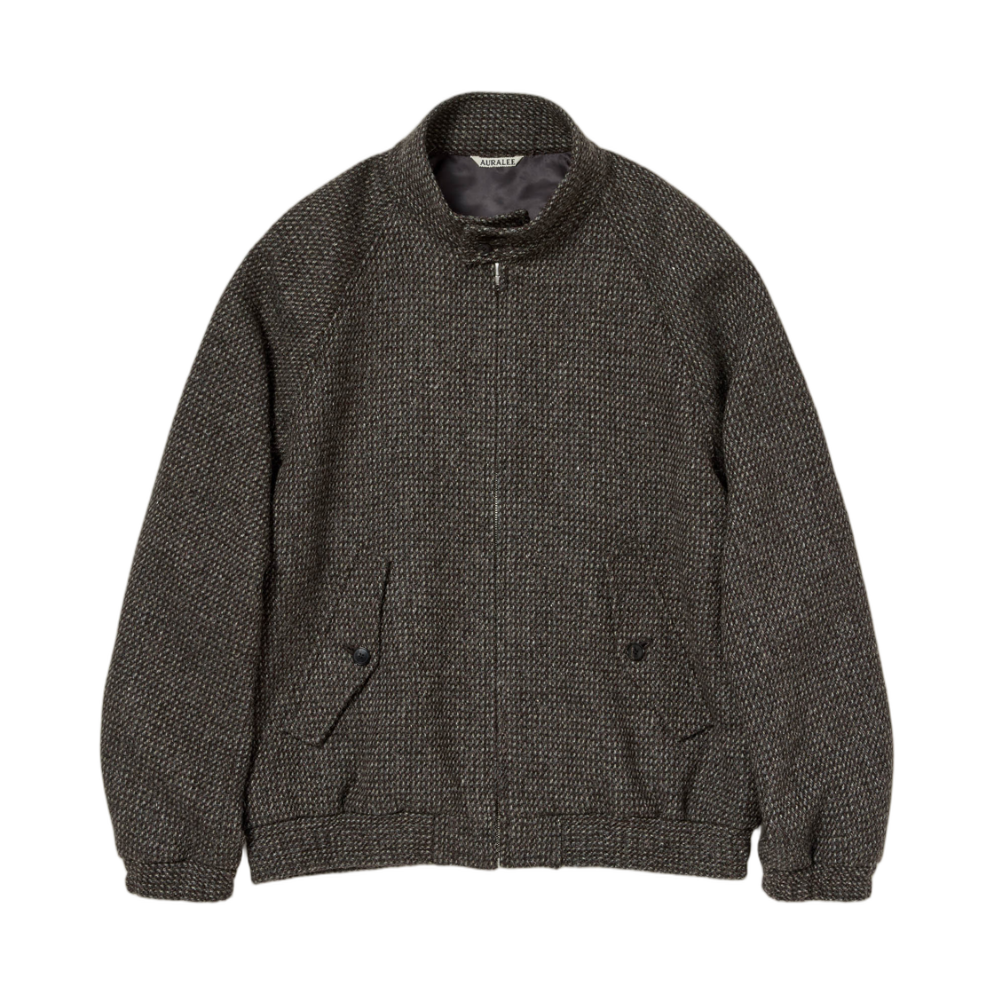 오라리 라마 셰틀랜드 울 트위드 집업 블루종 브라운 트위드