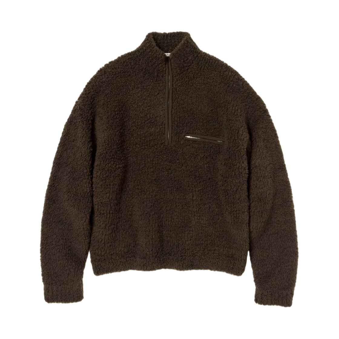오라리 퓨어 실크 컴포트 플리스 하프 집 P/O 브라운 - 25AW