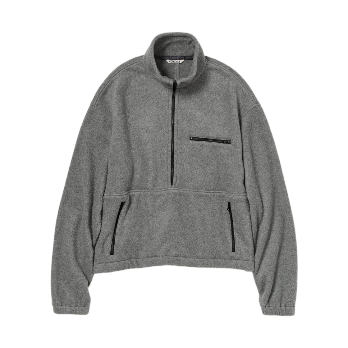 (W) 오라리 퓨어 실크 컴포트 플리스 하프 집 P/O 탑 그레이 - 25AW
