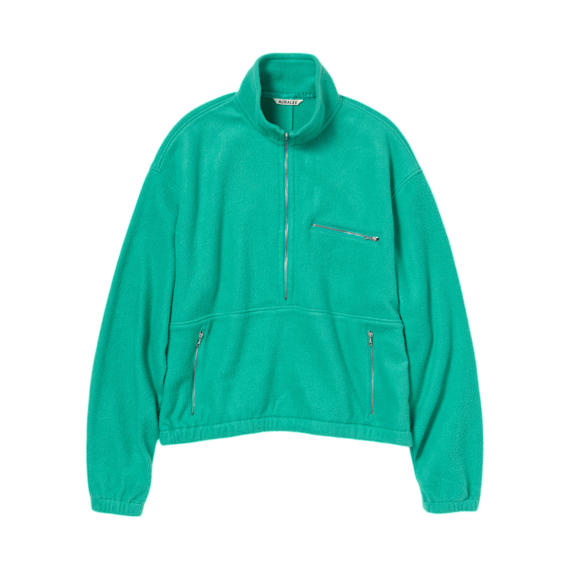 오라리 퓨어 실크 컴포트 플리스 하프 집 P/O 제이드 그린 - 25AW