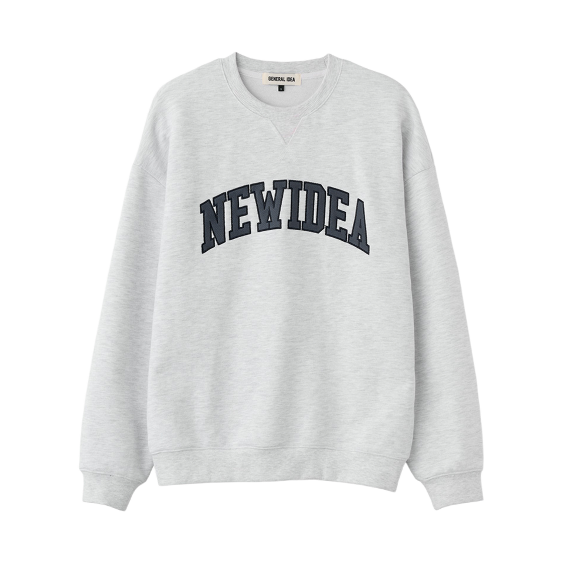 제너럴아이디어 유니섹스 뉴아이디어 아플리케 오버핏 맨투맨 화이트 멜란지 그레이