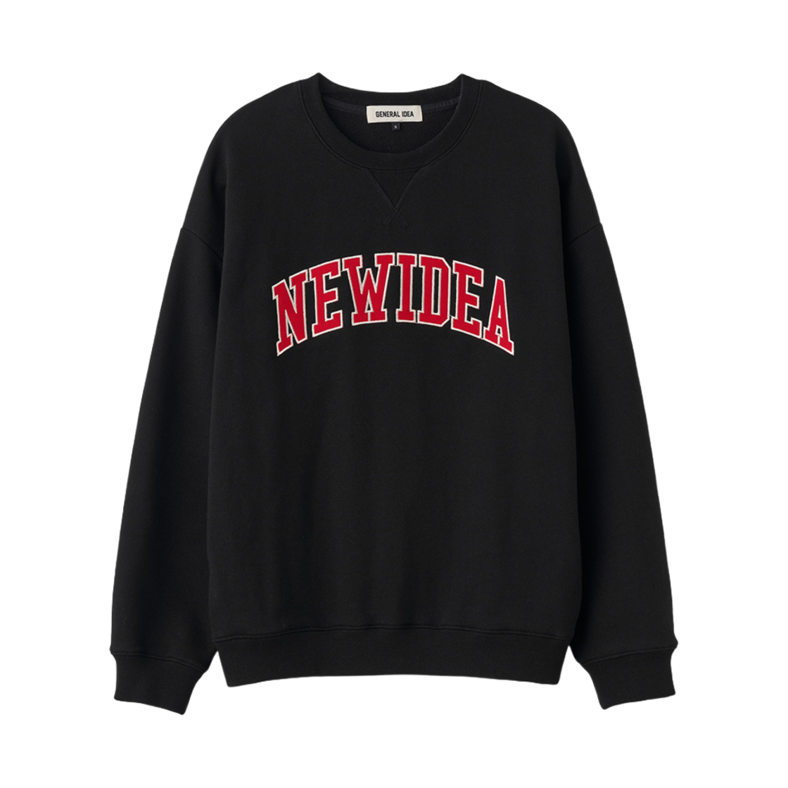 제너럴아이디어 유니섹스 뉴아이디어 아플리케 오버핏 맨투맨 블랙