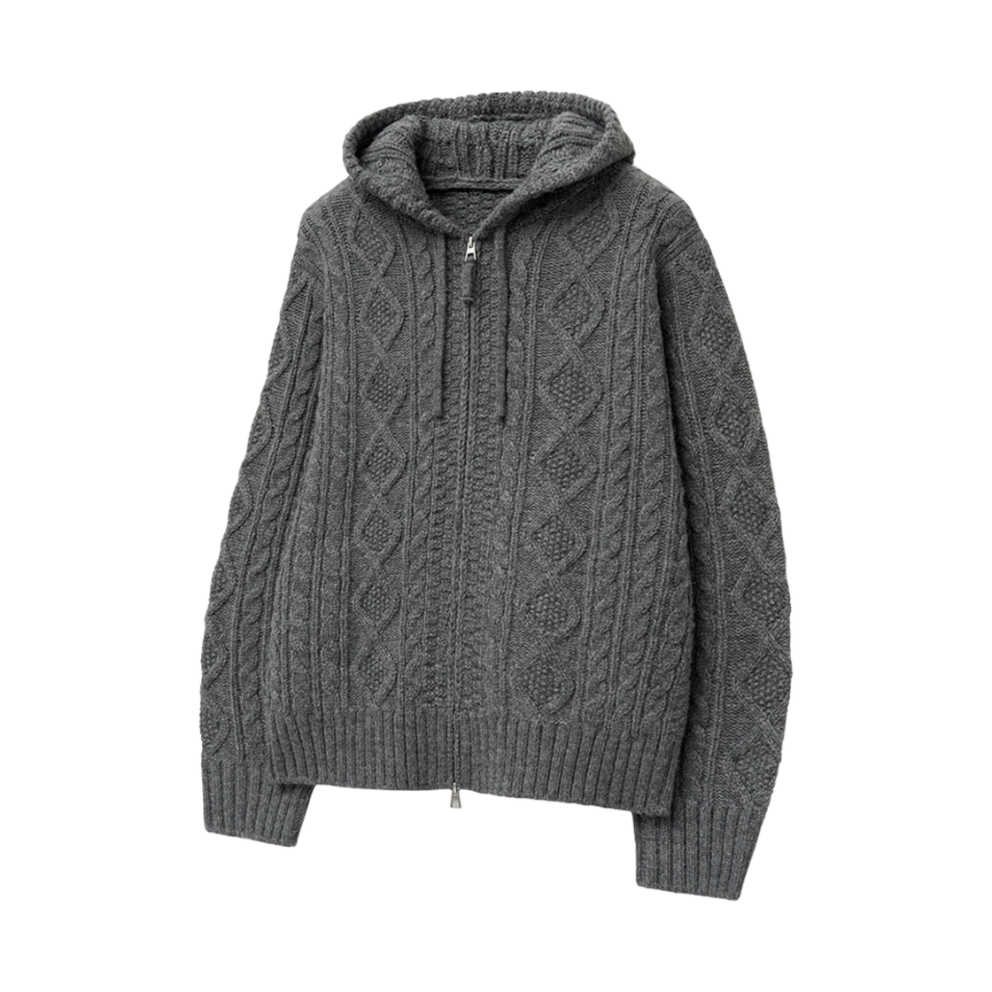 티엔지티 오버핏 케이블 후드집업 니트 멜란지그레이