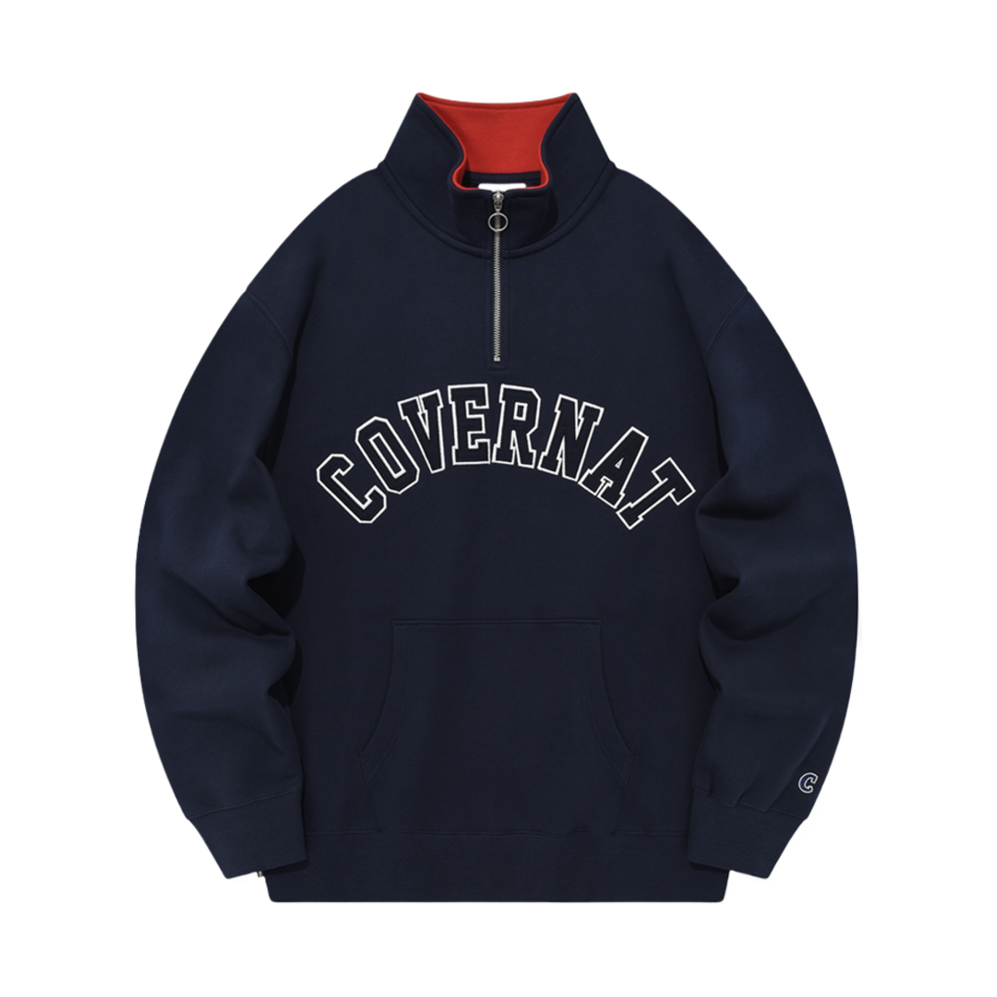 커버낫 오버핏 아치 로고 하프 집업 스웨트셔츠 네이비