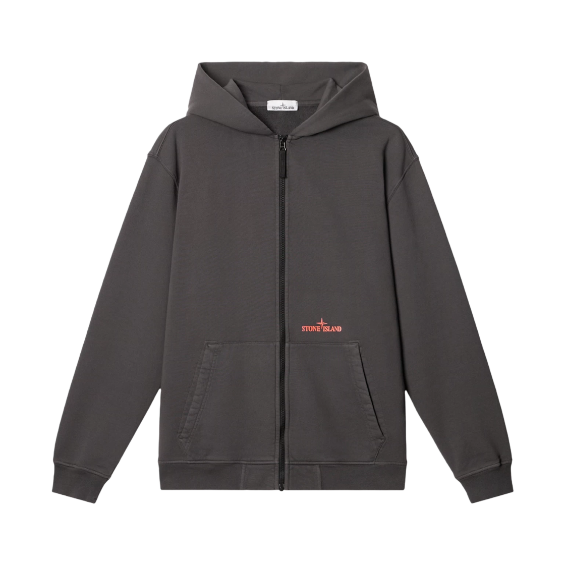 스톤 아일랜드 6100038 코튼 플리스 오버사이즈 핏 풀 집 스웨트셔츠 핑거 프린트 모티프 차콜 그레이 - 25SS