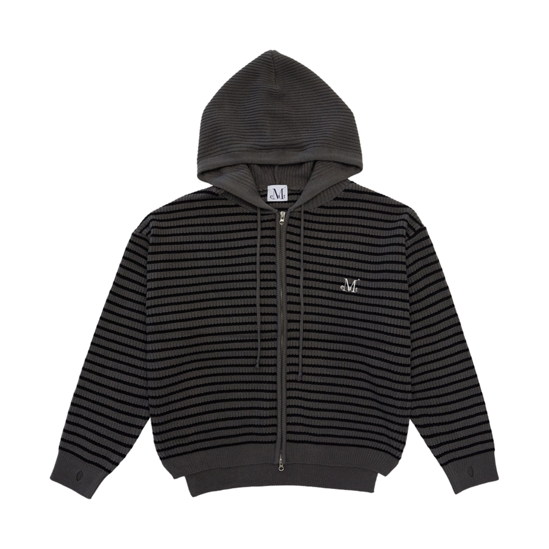 무센트 메이 오버핏 스트라이프 핸드워머 니트 후드 집업 차콜