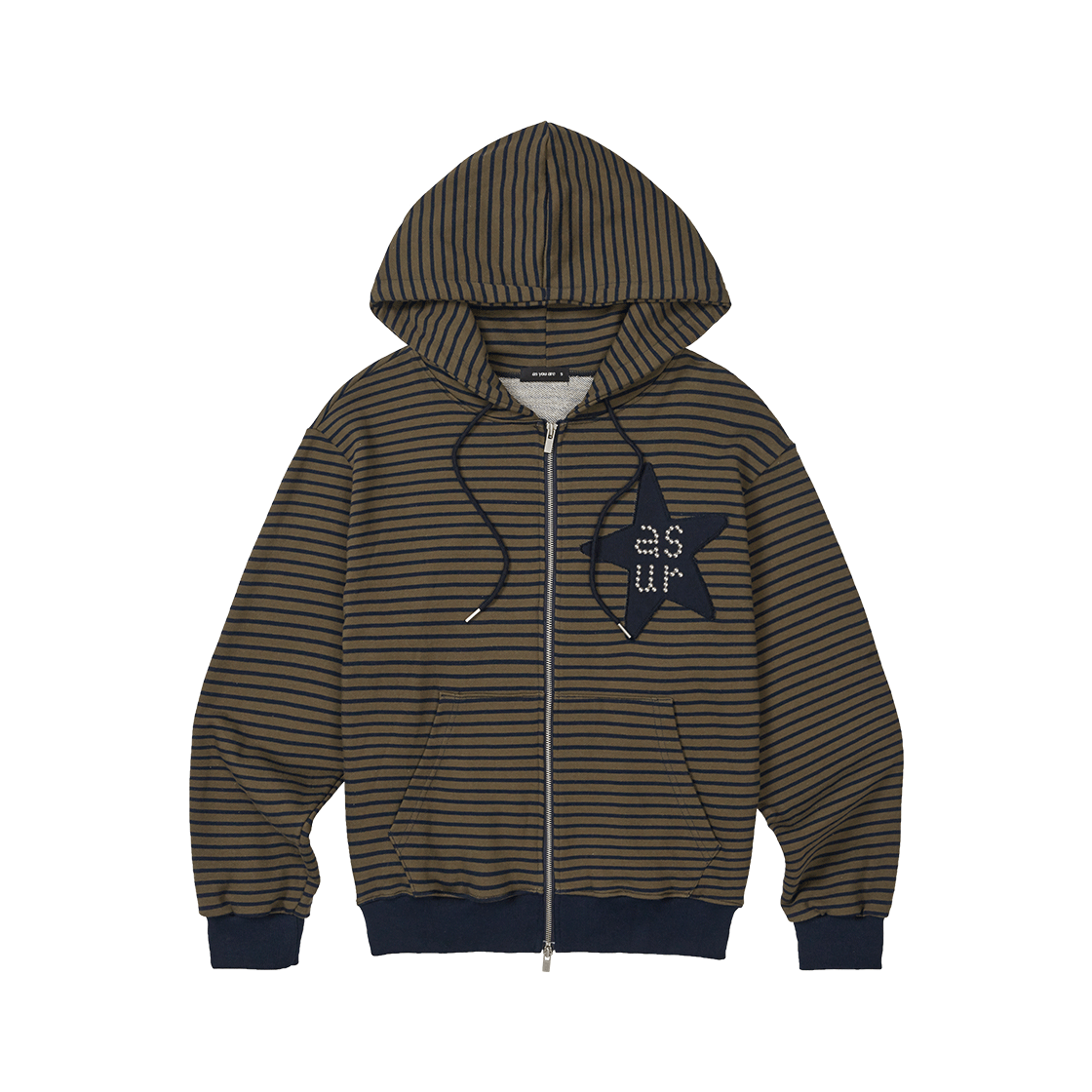 애즈유아 스타 패치 오버핏 후드 집업 네이비 카키