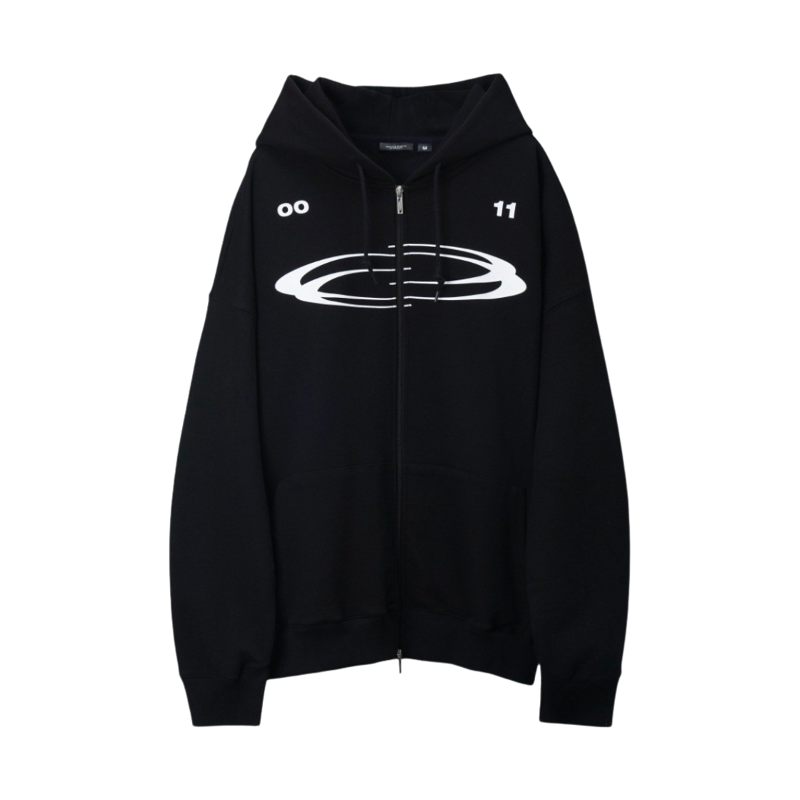 오프닝프로젝트 헤비 웨이트 로고 후드 집업 블랙