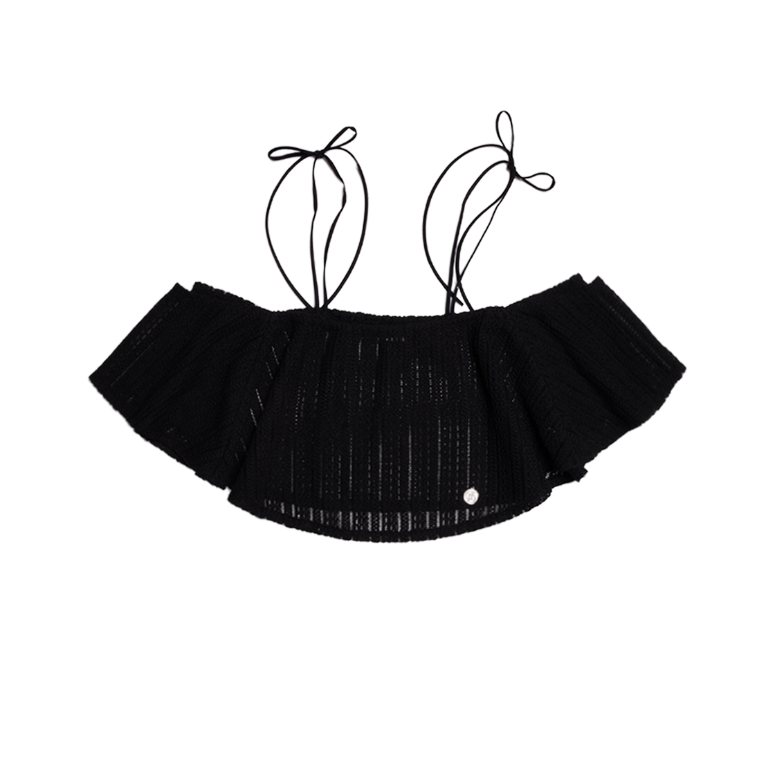 팬시클럽 디바인 크로스 오프 숄더 티 블랙