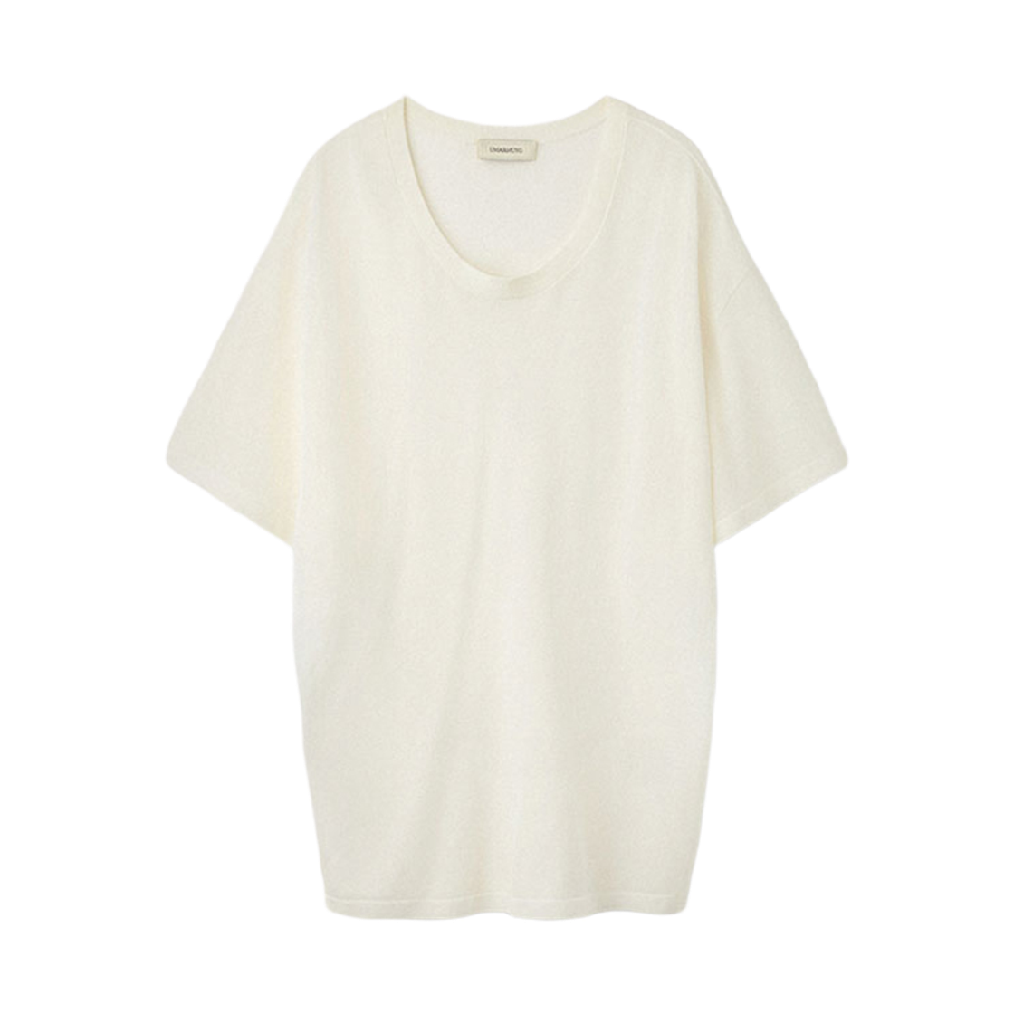 티엔지티 오프화이트 레귤러핏 헨리넥 니트