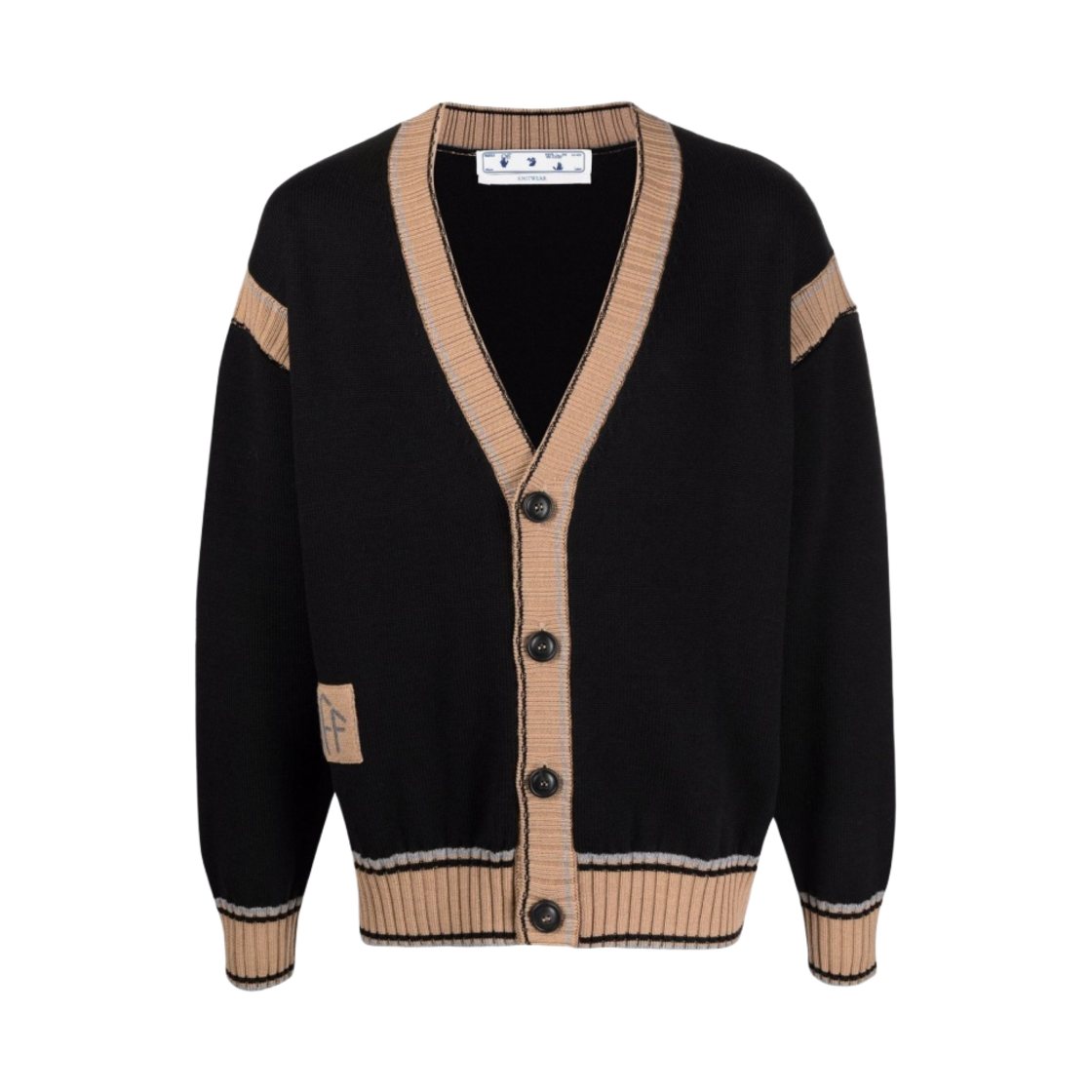 오프화이트 바시티 브이넥 니트 가디건 블랙 다크 그레이