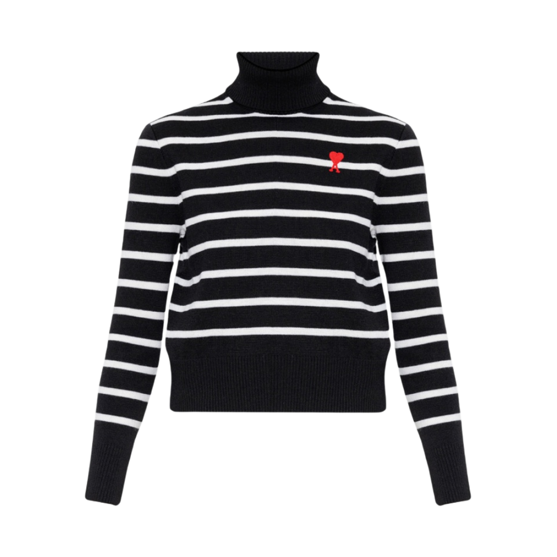 (W) 아미 스트라이프 스몰 하트 터틀넥 스웨터 블랙 오프화이트