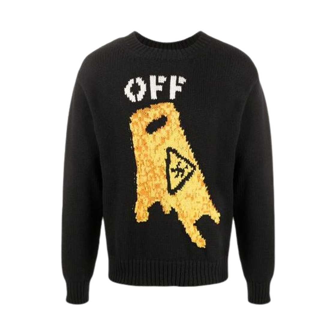 오프화이트 애로우 대디 니트 크루넥 스웨터 블랙