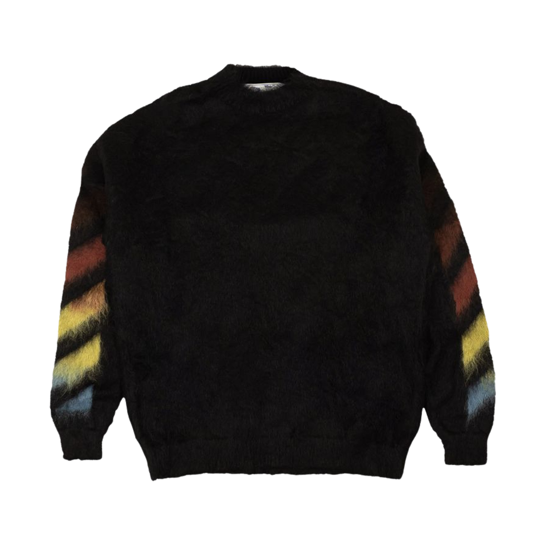 오프화이트 다이애그 브러쉬드 모헤어 크루넥 스웨터 블랙 레인보우