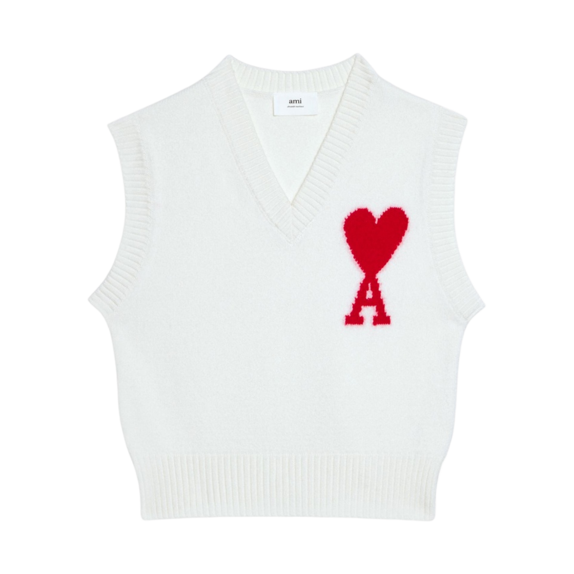아미 빅 하트 로고 슬리브리스 인타르시아 스웨터 오프화이트 레드