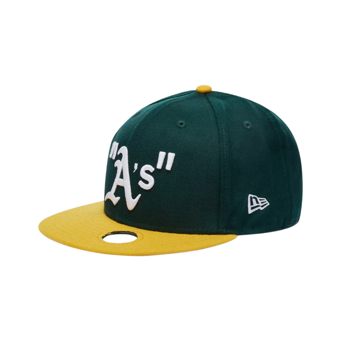 오프화이트 x 뉴에라 오클랜드 애슬레틱스 피티드 캡 그린 옐로우 화이트