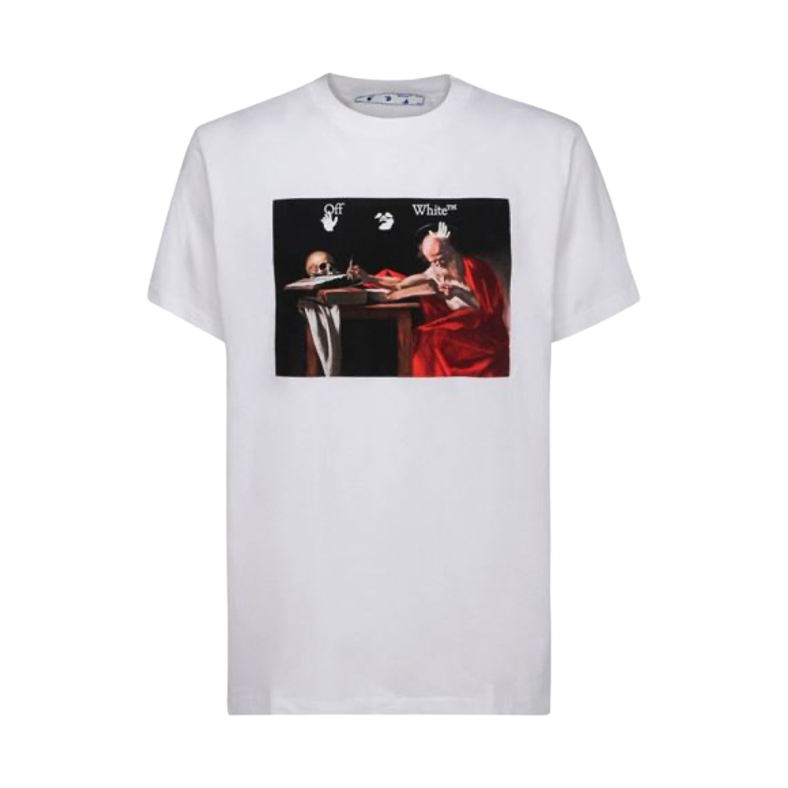오프화이트 카라바지오 페인팅 오버 숏슬리브 티셔츠 화이트