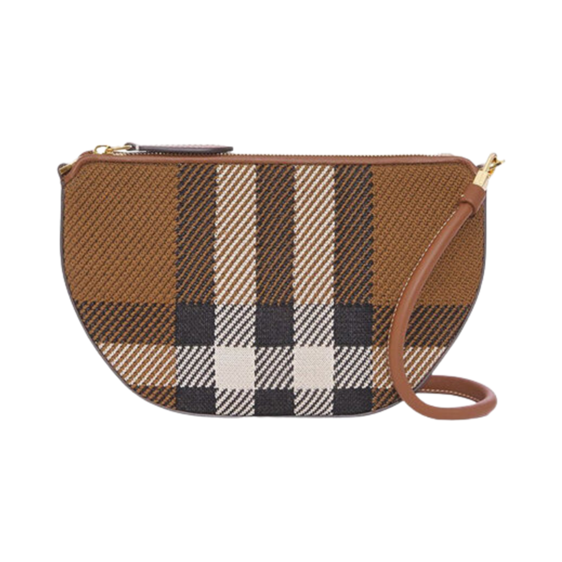 버버리 니트 체크 뉴 올림피아 파우치 백 다크 버치 브라운