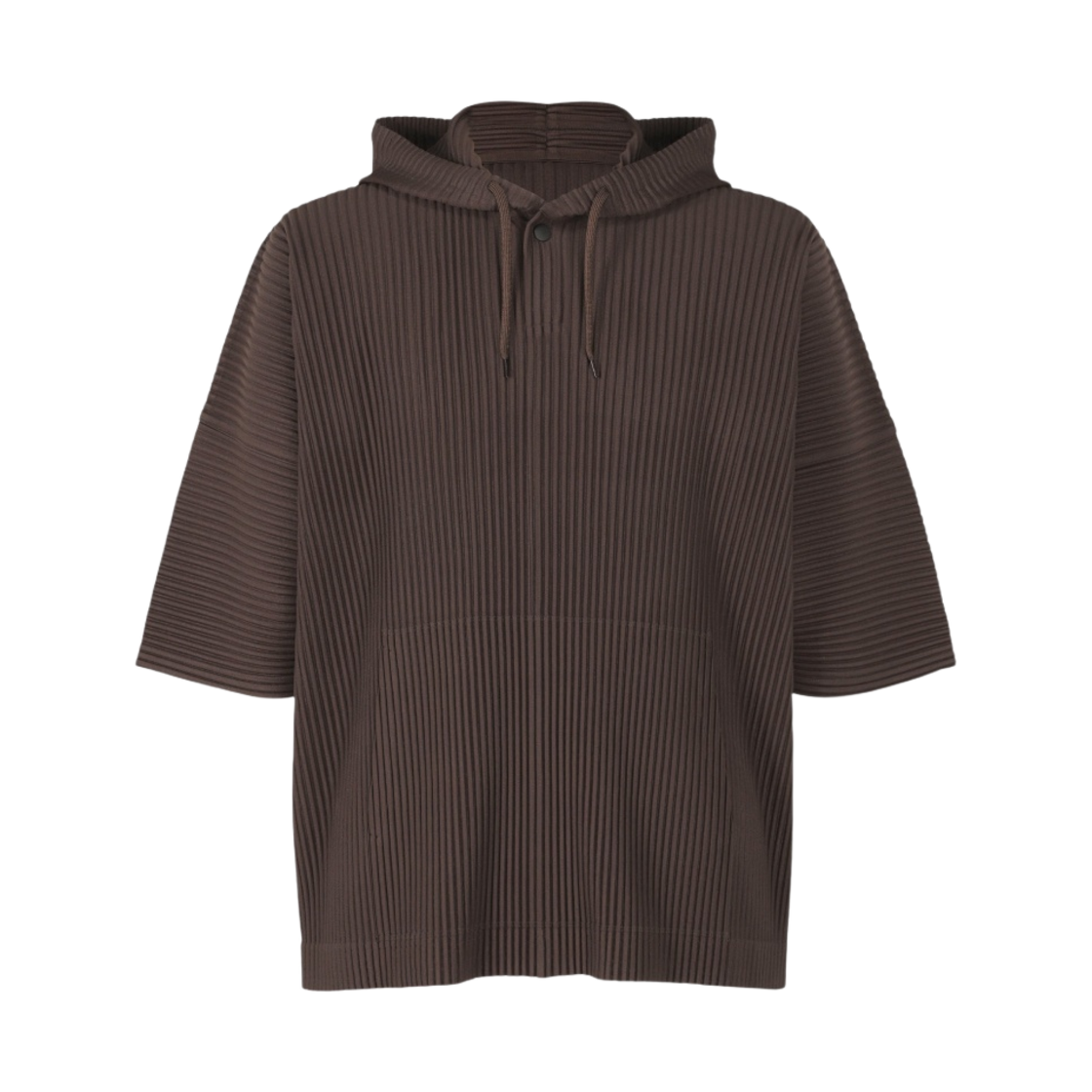 옴므 플리세 이세이 미야케 MC 준 후드 탑 다크 브라운