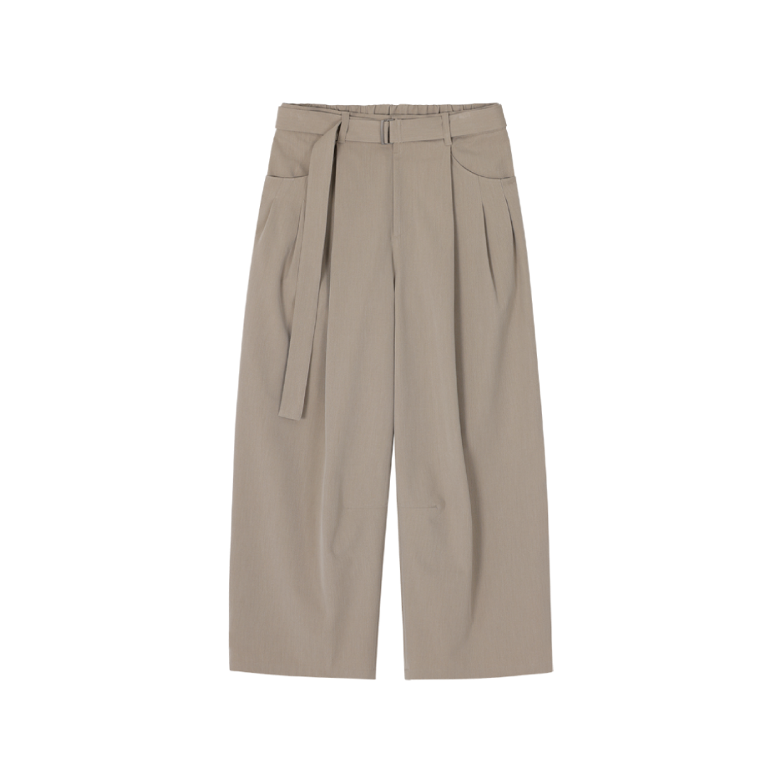 엔오르 우먼 벨티드 핀턱 와이드 슬렉스 그레이